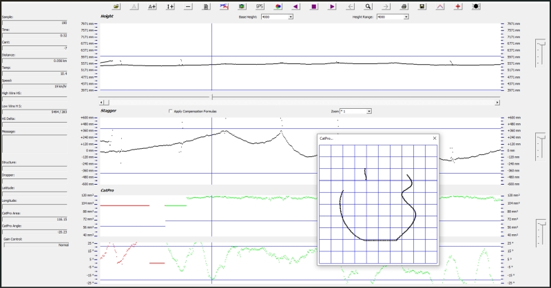 Die Bedienung von »CatPro« kann als Standalone-System oder mit komfortabler Anbindung an das OVHWizard-Messsystem zur Fahrdrahtlage erfolgen. In diesem Fall erfolgt die gesamte Bedienung über eine Software mit folgenden Features: