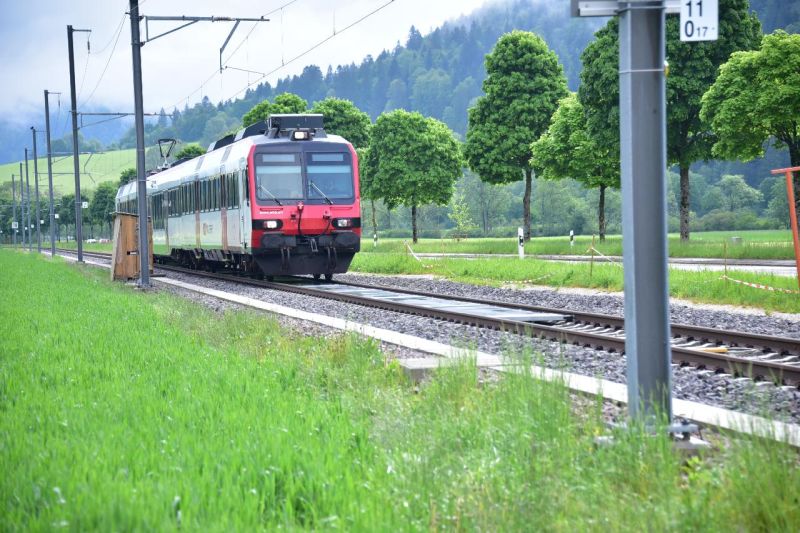 Kurz vor Redaktionsschluss erhielt der RegioTrans erschöpfende Antworten auf diese Fragen. Dies nicht einfach durch mehr oder weniger überzeugende Argumente des Initianten, sondern anlässlich einer Besichtigung im Neuenburger Jura, keine zehn Kilometer vor der Grenze zu Frankreich Richtung Pontarlier (F). Dabei ergab sich erstmals die Gelegenheit, die fest installierten Module beim Passieren von fahrplanmäßigen Zügen zu fotografieren. Dies, nachdem einen Monat zuvor die erste Versuchsstrecke in Anwesenheit von Vertretern der SBB und Behörden, Medien sowie zahlreicher ausländischer Delegationen eingeweiht worden war. Sie konnten einer Demonstration beiwohnen, die zeigte, wie die von Scheuchzer SA entwickelte »PUMA«-Bahnmaschine die 6 Meter langen Rahmen, bestehend aus 3 Solarmodulen, schrittweise zwischen den Schienen verlegte und auch wieder entfernte.